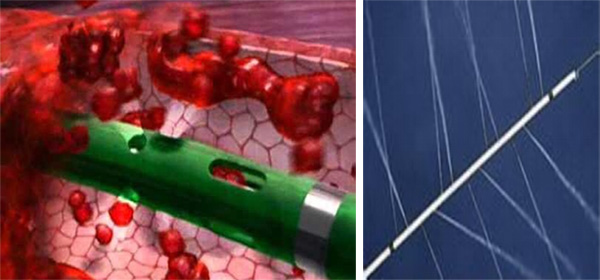 血栓完全堵塞、下肢肿胀严重的病人,常需接受手术治疗,才能获得较好的预后。微创腔内介入技术对血栓当然大有可为。目前主要包括导管接触性溶栓方法(简称CDT)和经皮机械血栓清除术(简称PMT)两种方法,有时两种方法经常联合使用。