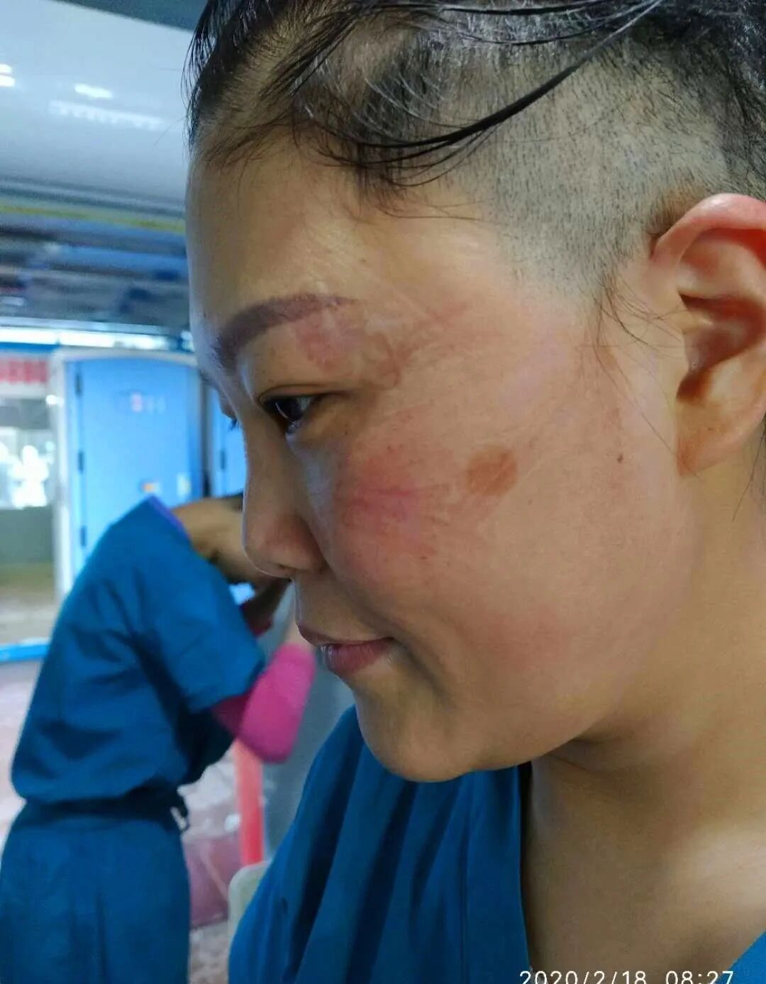 每次入舱任务结束,防护服内的衣物都会被汗水浸透、护目镜被雾水模糊的只有光感、脸上被防护口罩及护目镜压得伤痕累累。除了担负进舱治疗工作以外,她还负责医疗队防护物资、生活物资的管理工作以及队员的生活、个人防护的管理,事无巨细、一丝不苟,时常忙碌到深夜。