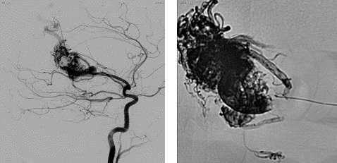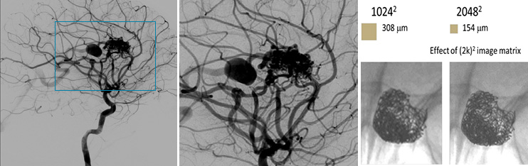 颅内动静脉瘘:图像放大后清晰显示瘘口及其周围细节,帮助临床选择正确的治疗方案。