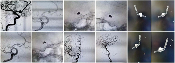 颅内动脉瘤支架辅助下栓塞术,设备具有的高分辨率CT功能可以完全展示支架展开、贴壁情况,与血管栓塞圈的关系等。