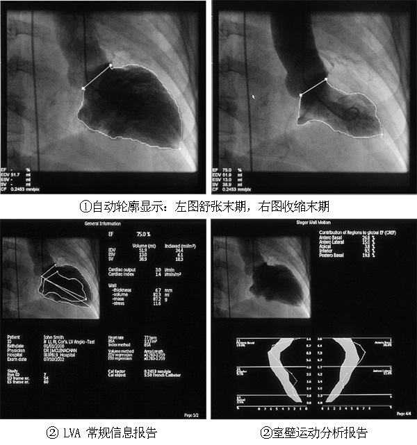 LVA定量左心室分析功能:左心室参数测量对于衡量患者的心功能有着重要的意义。LVA 可以自动测量多种左心室参数;测量完毕后,精确地计算出射血分数(EF)、心搏量(SV)、心输出量等参数和室壁运动分析,有助于评估冠脉狭窄的严重程度,和术后评估 PCI 治疗的效果。